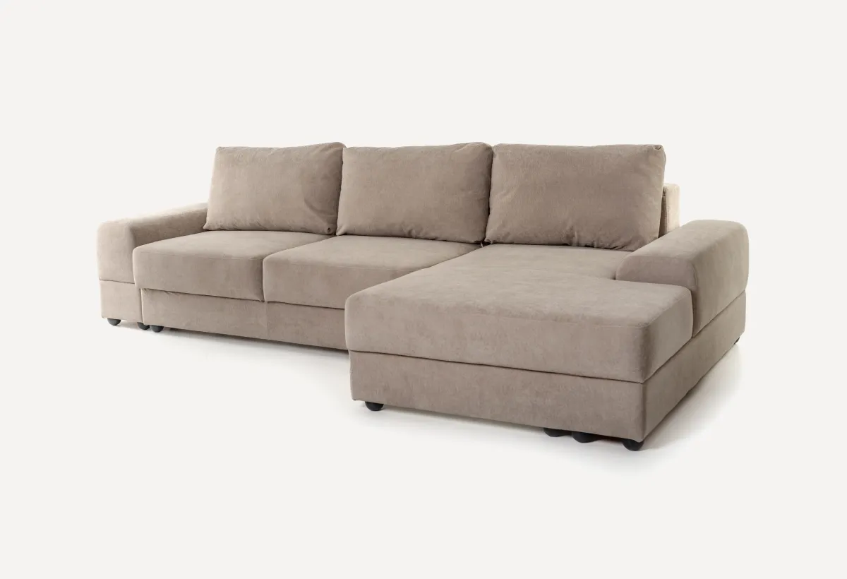 Что представляет модульный диван АндрэаДиван Андрэа — это модульная система, которую вы собираете под себя. Хотите компактный прямой диван? Пожалуйста. Нужна большая угловая конструкция с местом для хранения? Тоже без проблем. Внешне — строгий минимализм. Никаких завитушек и лишнего декора, только прямые линии и простая геометрия. Благодаря этому он одинаково хорошо смотрится в современной гостиной, квартире-студии или даже спальне. Добавьте сюда детали из скандинавского стиля и лофта — получится мебель, которая не будет спорить с интерьером, а станет его аккуратной частью. Внутри — добротный каркас из ДСП и фанеры, пружинный блок «змейка» и многослойный поролон (жесткий, плотный, сверху — лотекс и холкон). То есть диван рассчитан на ежедневную нагрузку. Производитель заявляет до 110 кг на одно посадочное место и 140 кг на спальное. В общем, сделано на совесть. Соединяются модули между собой обычными болтами — ничего не будет разъезжаться.